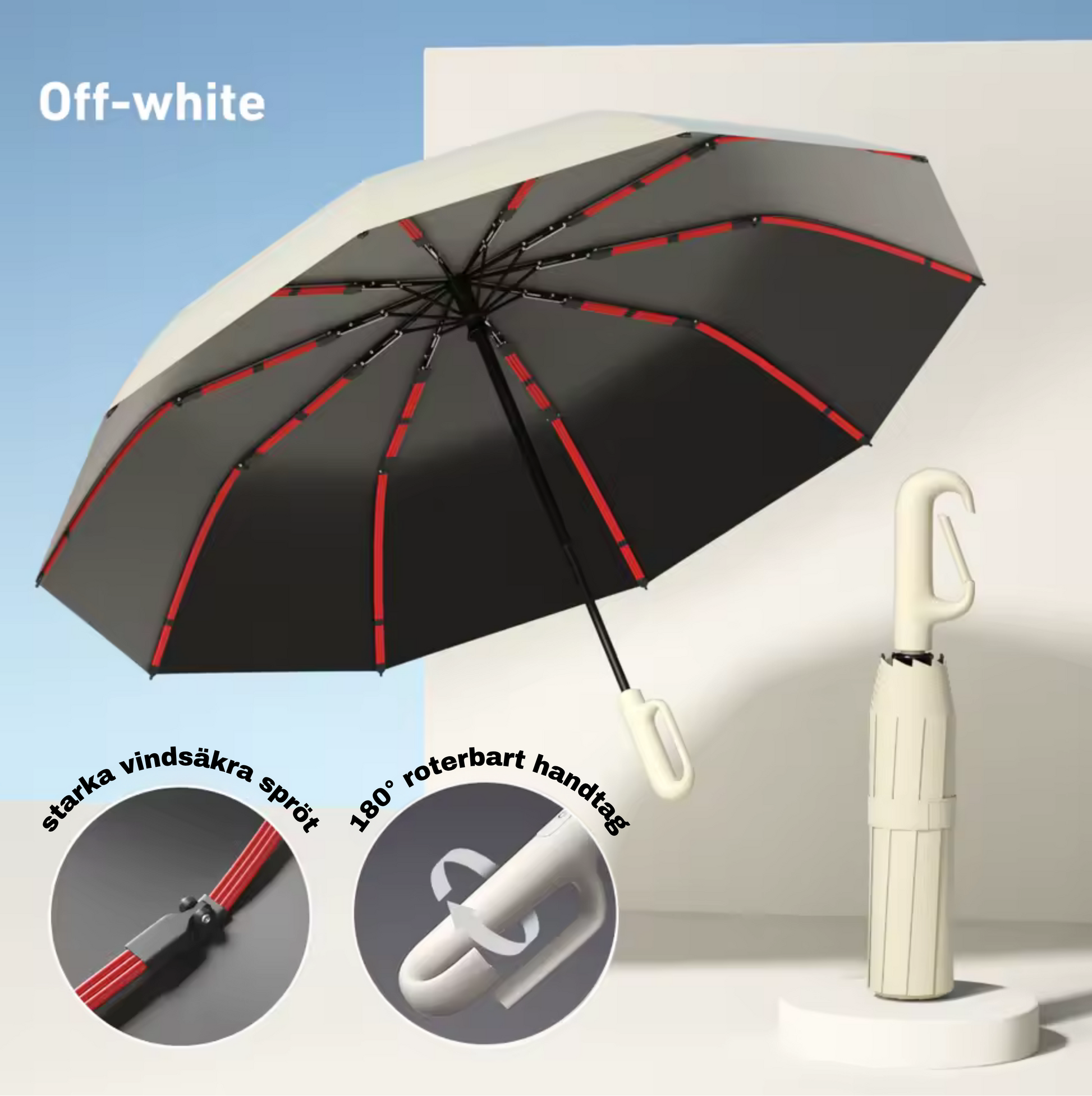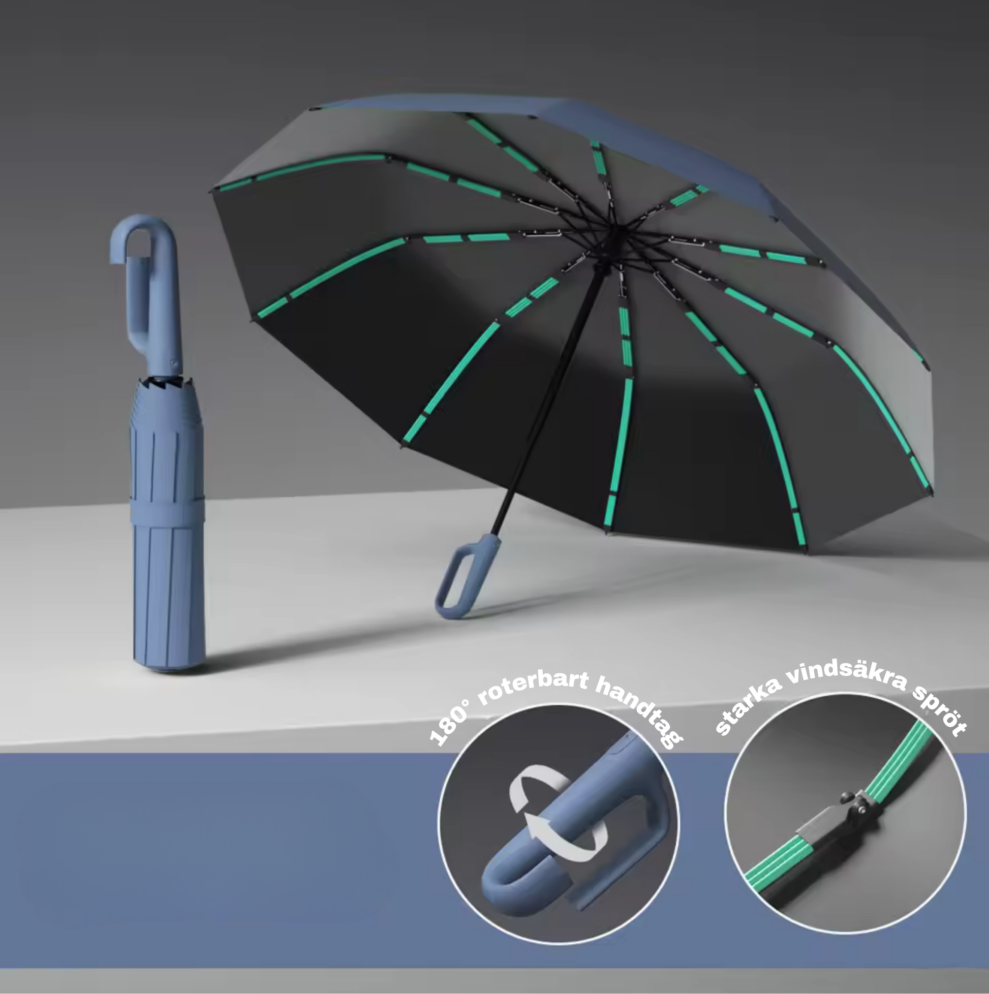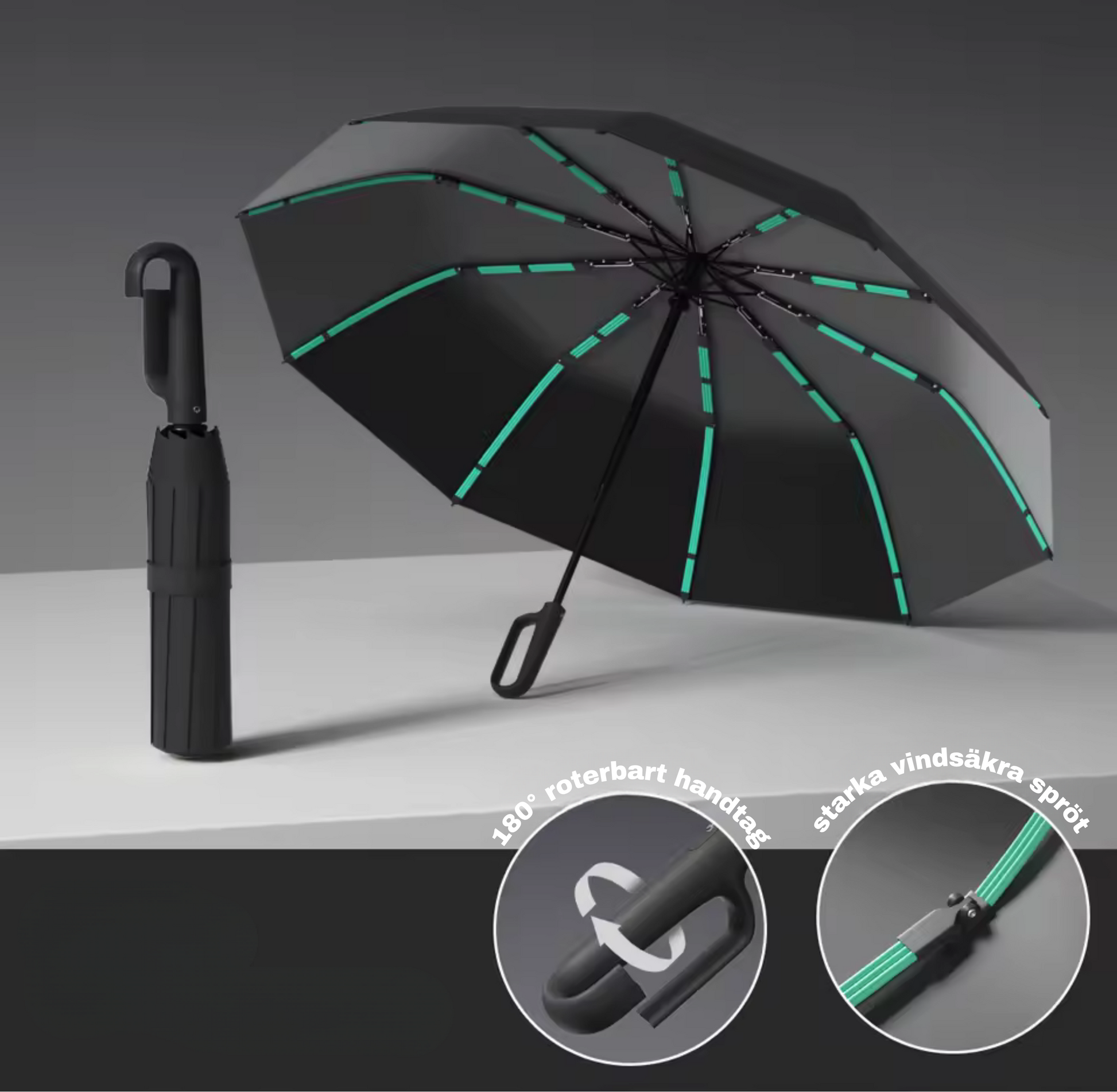 Det här paraplyet är konstruerat med ett förstärkt skelett och vindtålig design som står emot även när vädret visar sin tuffaste sida. Stabilt, pålitligt och gjort för dig som vill slippa trasiga paraplyer efter första blåsten.